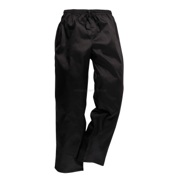 Spodnie kucharskie Portwest Drawstring C070 czarne. - nogawki proste, mocne szycie. Wykończenie plamoodporne: